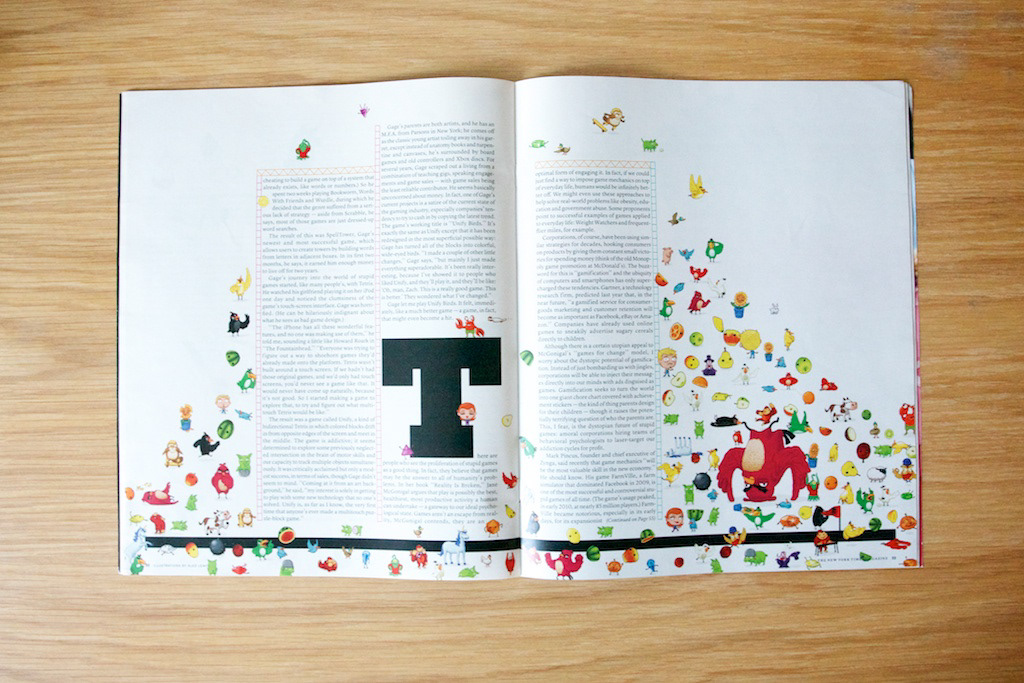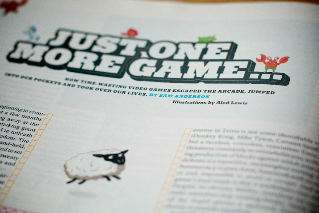 Cover and Editorial illustration for The New York Times Magazine feature on the culture of addictive games titled Just One More Game... The online publication of this feature included NYTs first ever use of an animated GIF made from my artwork.